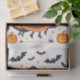 Um trio festivo de bruxas sorridentes voa sobre suas vassouras, voando contra um céu noturno estrelado e cheio de morcegos. Vestidos em laranja vibrante e roxo, criam uma cena verdadeiramente encantadora. Grelha-as-lanternas e aranhas brincalhonas completam esta design, perfeita para enrolar todas as suas guloseimas de Halloween.