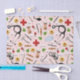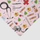 Tecido creativo de prenda ou decoração de festas com material médico e padrão de flores em fundo cor-de-rosa para enfermeiro, médico ou assistente médico.