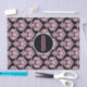 Papel De Seda Preto & Rosa Glam Damasco Monograma Letra Inicial