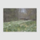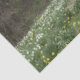 Edifício correndo com equipamento de fazenda em meio a um prado de flores amarelas e brancas.