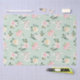 Um tecido bonito para primavera, aniversários ou chás, feito como uma imagem perfeita e clara para seu prazer personalizado máximo. Mostrado aqui em um fundo de menta é o doce padrão de rosas cor-de-água rosa, amarela e branca com folhas, acentuado com as cabeças de cordeiro vestindo coroas de flores.