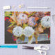 Papel de tecido de decoupage do artesanato de pintura a óleo de abóboras brancas de outono, cor de laranja brilhante. O belo outono de outubro deixa as cores da colheita de Ação de Graças. Imagem copyright Marg Seregelyi Fotografia.