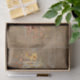 O design é colocado sobre um fundo de madeira recluso e curado, com a escrita de efemera e a publicidade. Uma mistura de cogumelos e amoras-doce-de-safra-vintage é desenhada graficamente com pinturas originais de uma abóbora-branca e folhagem de ferrugem-terra e flores para uma colagem rústica, mas elegante, por uma artista e designer internacionalmente licenciada, Audrey Jeanne Roberts, copyright.