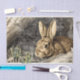 Excelente para artesanatos de temas de desacoplamento e primavera. Um coelho marrom esconde-se debaixo de uma árvore grande e pára de cheirar as flores da neve. Escrita em francês no fundo.