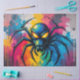 An electrifying burst of street-art energy — this vivid design features a fierce neon spider glowing with fiery orange eyes against a rainbow graffiti backdrop. Splattered color drips and urban textures give it a rebellious, pop-art edge that’s perfect for modern mixed-media pieces, Halloween décor, or edgy furniture accents.