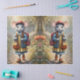 Este lenço apresenta uma menina de rato fofa a caminho da escola. Excelente para os seus artesanatos ou como embrulho de presente!