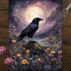 Esta pintura encantadora de aquarela apresenta um corvo silenciado contra uma lua de cheio brilhante, cercado por delicadas flores silvestres em tons de aquarela macia. A atmosfera mística e sonhadora combina a beleza da natureza com uma cena noturna etérea, perfeita para amantes da arte gótica e celestial.