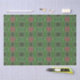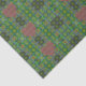As formas cardíacas coloridas são dispostas num padrão repetitivo contra um fundo vibrante e simétrico, cheio de designs verdes e azuis intrincados. O design cria um efeito caleidoscópico, oferecendo uma experiência visual que mistura ordem e complexidade.
