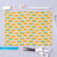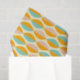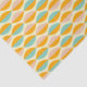 Repeating geometric pattern with overlapping leaf shapes in orange, teal, and pink on a beige background. The design conveys a retro, vibrant feel.