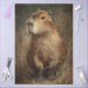 Uma ilustração detalhada de uma capybara em seu hábitat natural entre a grama.