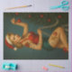 This festive retro pin-up brings playful holiday sparkle to any project. Hanging ornaments from a lush Christmas tree, she combines classic 1950s glamour with a bold modern twist—complete with poinsettia, snowflake, and gingerbread tattoos. The rich teal background and soft golden lighting create a warm, nostalgic holiday mood.
