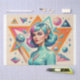 A striking retro-futurist female portrait inspired by mid-century pop art and space-age aesthetics. Bold geometric shapes, vibrant colors and a confident feminine figure create a dynamic and modern design. Perfect for decoupage projects, furniture upcycling, mixed media art, and creative DIY crafts. This tissue paper adds a unique artistic statement to any surface.