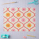 Papel De Seda Retro Orange and Pink flowers on Ogee Pattern