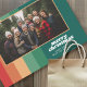 Design de Natal não convencional com uma vibração de 70 anos. Arte Retro Line em Reds and Teals — Use 1 foto e faça uma saudação de Natal Merry única e moderna com uma fonte retrô e um padrão festivo de arte de linha. Se precisar mover alguma coisa, clique no botão personalizar para fazer alterações.