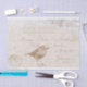 Excelente para projetos de dissociação. Um pássaro-pinto europeu num cartão-postal francês vintage e com um carimbo postal com um óleo azul-pálido pintado de fronteira.