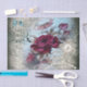 Linda, vintage, florais de rosa vermelha de jornal, com broche e colar de pérolas falsas, gaiola de pássaros com arco para criar um estilo de luxo, extravagante e chic para a dissociação.
