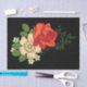 Papel De Seda Rosa Vermelha e Margaridas em Fundo Preto