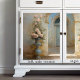 IMAGEM DO LADO ESQUERDO | 1 DE 3 | ELEGANTE DECOUPAGE pintura de um pátio francês de Chateau com urnas transbordantes com rosas rosa pálidas e pálidas. As grandes urnas azuis ficam guardas sobre a entrada e a elegância rústica da autoestrada e da porta em apuros. Imagem botânica do chique junk journal com textura estalada fornece antiguidade instantânea para sua mobília ou projetos decorativos. Para coordenar a pesquisa de imagens MSP0147
