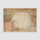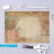 Um design de estilo antigo com rosas cor-de-rosa, folhas verdes e renda sobre um fundo de escrita à mão. Ótimo para embrulhar presentes ou para projetos de artesanato e decoupagem.