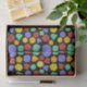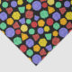 Este papel colorido de tecido padronizado é perfeito para embrulhar presentes para fãs de jogos de papel e conselhos de fantasia. Ele apresenta ilustrações de diferentes dados multilaterais em um cenário verde, roxo, laranja, vermelho e amarelo em um fundo preto.