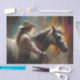 Transform your project with Rustic Cowgirl with white horse decoupage by Decoupage_Boutique. This richly textured design features a western cowgirl in soft focus beside her white horse, set against a backdrop of expressive painterly strokes in earthy browns, fiery golds, and pops of turquoise and fuchsia. The artwork evokes a sense of quiet trust and rugged beauty, making it perfect for ranch-inspired furniture pieces or statement décor.