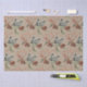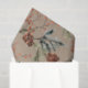Um papel de tecido corado rústico, de cor kraft, que apresenta um buquê pintado a aquarelas, cones de pínus e ramos de zimbro vermelho, reproduz o padrão.