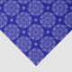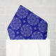 Esta mandala branca senta-se sobre um fundo azul brilhante e profundo. As cores são inteligentes e introspectivas. Parte da Coleção Dagrewi Mandala.