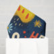Esta imagem vibrante e divertida apresenta a frase "OLÁ SUNSHINE" em uma fonte desenhada à mão, multicolorida. A tipografia é colocada sobre um fundo azul escuro preenchido com uma variedade de abstrato e padrões de cor clara. O design geral tem uma sensação artística texturizada que combina cores ousadas e rabiscos brancos para criar uma saudação alegre e positiva.