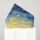 A schnauzer sitting beneath a swirling star-filled sky, gazing up at a glowing moon, inspired by classic post-impressionist movement with rich color.