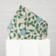 Seamless floral pattern with blue flowers, green leaves, and twisting vines on a light beige background. The design is lively and decorative.