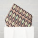Seamless geometric pattern with dark brown leaf shapes, beige circles, and teal diamond accents. Retro and symmetrical design creates a vintage feel.