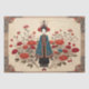 Num delicado pergaminho, uma mulher oriental estilizada fica graciosamente num quimono tradicional. O quimono, condecorado com flores vermelhas vívidas, contrasta lindamente com as sutilezas do pergaminho, criando uma mistura harmoniosa de tradição e arte. A imagem evoca a sensação de arte clássica japonesa, integrando perfeitamente elementos da natureza e da moda. Essa cena, perfeita para um projeto de artesanato de dissociação, poderia ser usada em papel tecidular ou como peça central em uma transformação de móveis, acrescentando um toque elegante e eterno.
