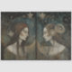 Sereias Gêmeas Celestiais Na Pintura Costeira, Pintura Primitiva Celestial, com Noite Luar, com Belas Sereias No Oceano, no estilo da arte primitiva, retrato ilusório, paisagem marinha.