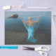 Sereia pelo mar azul pintou papel de tecido de artesanato de arte náutica de fantasia fina. Linda, moça de moda ao longo da linha costeira. Imagem copyright Marg Seregelyi Fotografia.