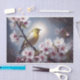 Transforme móveis comuns em tesouros inspirados na primavera com este design radiante de mariquita e flor de cerejeira. Esta peça oferece uma perspectiva mais próxima e íntima da mariquita amarela entre flores de cerejeira totalmente floridas, com cores mais profundas e ricas do que sua peça companheira. A obra de arte captura magistralmente a interação de luz e sombra, com o pássaro parecendo brilhar contra um fundo azul escuro enquanto está cercado por flores imaculadas com centros rosa profundo. Cada pétala é renderizada com clareza cristalina, mostrando veias delicadas e transições de cor sutis.