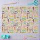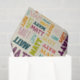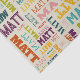 Crie um lenço extremamente personalizado. O seu nome personalizado aparece em todo este documento numa colagem de diferentes fontes e estilos de inscrição. A inscrição em verde, verde-menta, azul e amarelo é colocada sobre um fundo azul marinho. Este estilo é ideal para nomes de comprimento mais curto de até 4 letras para nomes mais longos ver os outros designs nesta coleção.