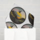 A sticker with an eagle flying over a mountain, in the style of contemporary landscape, golden light, black mountain college, fisheye lens, arts and crafts movement, mid-century illustration