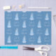 Aqui temos um papel de tecido encantador que mostra um recorte de um boneco de neve com um dentro de cena de inverno adorável, e as palavras "Deixe-o nevar" em um fundo azul com padrão de neve. Este documento está disponível em vários tamanhos e corresponde a outros papéis de embalagem, papéis de tecidos, sacos de presentes e um cartão de saudação. Isso certamente fará uma adição perfeita aos seus presentes nesta temporada de festas.