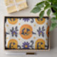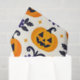 Enrole seus presentes em brilho de fantasma com esse lenço de Halloween, apresentando um padrão festivo de sorriso de pinto-o-lanternas. As abóboras cheias com rostos clássicos esculpidos estão rodeadas por delicadas flores roxas e estrelas cintilantes. Este design charmoso adiciona um toque doce e assustador a qualquer presente.