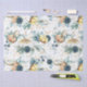 Papel tissue com padrão de suculentas folhagens e abóboras douradas aquarela