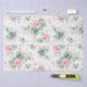 Papel tissue com padrão de suculentas aquarela, folhagens douradas e flores rosa
