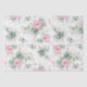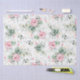 Papel tissue com padrão de suculentas aguarela, verde e flores rosa