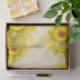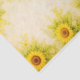 A bright botanical sunflower design arranged in a soft decorative frame around the edges of the composition. Large golden sunflowers bloom from each corner, their rich brown centers surrounded by radiant yellow petals and fresh green leaves. Smaller blossoms and delicate wildflower sprigs weave gently between the larger flowers, creating a light, airy garden feel. The center of the design remains open, allowing the warm parchment-toned background to show through. Subtle watercolor textures and faint vintage paper tones give the artwork a soft, rustic charm reminiscent of botanical illustrations and garden-themed stationery. The overall composition creates a cheerful floral border effect, with the sunflowers naturally guiding the eye inward while maintaining a balanced symmetrical arrangement. The gentle palette of sunny yellows and fresh greens makes the design ideal for bright seasonal crafts, farmhouse décor, and botanical-inspired projects. Artwork similar to a watercolor botanical illustration with soft vintage paper textures……PERFECT FOR: Decoupage furniture projects, mixed media crafts, journal covers, decorative trays, handmade gifts, sunflower themed décor, cottage style interiors, craft fair items, seasonal summer décor, floral wall panels, stationery inspired craft projects, scrapbook pages, gift wrapping tissue…. 🖤 NOTE 1. The 18 lb tissue is a great choice if you like a little extra strength—it's easier to handle, resists tearing and allows for gentle repositioning. It’s also more opaque, making it perfect for darker surfaces. The 10 lb tissue is wonderfully lightweight and flexible giving you that smooth, blended finish. It’s ideal for layering on furniture or smaller projects so treat it gently and it will reward you with stunning results!.….🖤 NOTE 2. All items with this particular design share my unique identifying “Letter/s Number/s” label in the title for easy searching. …..🖤