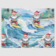 Wrap your gifts with sunshine and sea spray! This Surfing Santa on a Big Wave in Hawaii tissue paper design captures Santa in his red hat and Hawaiian shirt surfing a brilliant turquoise wave under a bright sky. Palm trees sway at the edge of the scene, and the watercolor texture gives every sheet a fresh, modern coastal look.