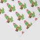 Bom final de Natal, especialmente para crianças que amam dinossauros! Apresenta um padrão verde de T-Rex sorridente no chapéu de Santa e cachecol em fundo branco.