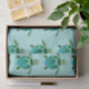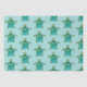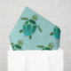 Papel tecidular branco apresenta pequeno padrão azul-esverdeado de tartarugas marinhas em fundo aqua