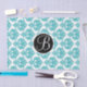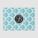 Papel De Seda Teal Aqua Glam Damasco Monograma - Letra Inicial