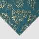 This elegant and glamorous tissue paper is versatile and can be used for giving gifts or art and craft projects. The design features gold Christmas trees on a teal blue background. Perfect for Christmas and the holiday season.