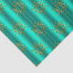 Um belo papel de tecido luxo de ouro e lacre de ouro que irá adicionar um toque elegante e na moda ao seu presente neste Natal. A design é constituída por estrelas de Natal (ou flocos de neve) metálicas, ouros, espalhadas sobre um bonito fundo de chá/aqua brilhante.