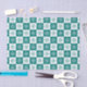 Flocos de neve brancos e lacrimejantes alternam em quadrados brancos e azuis-esverdeados para criar um padrão geométrico na moda perfeito para o feriado de Natal. Para ver o design original em outros itens, clique no link "Artes Rocklawn". Copyright ©Claire E. Skinner. Todos os direitos reservados.